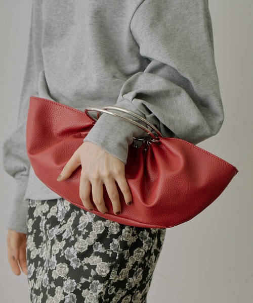 ◆シルバーのフープハンドルが目を惹くハンドバッグ◆ 【Design】 ハーフラウンド型がモードで高見えするハンドバッグ。 持ち手がフープデザインになっており、ブレスレットのように手元に華やかさをプラスしてくれます。 ミニマムな雰囲気ながら、500mlのペットボトルも入る大きさなので見た目以上に物が入るのも嬉しいポイント。 普段使いはもちろん、オケージョンシーンにも活躍するバッグです。 ▼商品のお気に入り登録 お気に入りアイテムの値下げ・再入荷・在庫1点などの通知を受け取ることができます。 ▼ブランドのお気に入り 登録新商品や再入荷、セール、クーポン配布などお得な情報を受け取ることができます。 ※画像の商品はサンプルです。 実際の商品と仕様・加工・サイズが若干異なる場合がございます。予めご了承くださいませ。 ※撮影場所やお使いのモニター環境により若干お色味が異なる場合がございます。 ※製品によっては染料の特性上、湿った状態や汗をかいた状態での長時間の放置、または摩擦により、他のものへ色移りする恐れがありますので、着用時にはご注意下さい。 ※風通しがよく、湿気の少ない日の当たらない場所で保管して下さい。 ※また製品加工上、お手元に届く際に匂いが生じる場合がありますが、 ご使用を続けていく事により匂いは軽減されます。