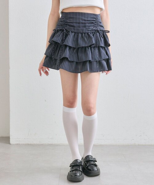 ドロストデザインがポイントのティアードミニスカート ■デザイン ・ウエスト部分のドロストとリボンがガーリーなミニスカート。 ・ふわっと感のあるティアードシルエットで細見えも期待できます。 ・ウエストの背中側がゴムなので着心地よく、トップスをインしてもごわつきにくいです。 ・裏地はパンツの形なのでミニ丈でも安心感があります。 ■カラー ・オフ/チャコール/ネイビー/ライトブラウンの4色展開 ■スタイリング ・ガーリーなトップスと合わせてバレエコアコーデがおすすめ。 ・チュニックの裾からちらっと見えるように着るのもかわいいです。 ・足元はハイソックスにブーツやバレエシューズを合わせると韓国っぽい着こなしに。 ----------------------------- 裏地:あり 光沢感:なし 透け感:なし 伸縮性:なし 手洗い:可能 タンブラー乾燥:不可 アイロン:110℃まで ----------------------------- ※着用、お取り扱いの際は、商品についている品質表示とアテンションタグを必ずご確認下さい。 ※ご覧のモニター環境や撮影環境により実際の商品と多少色味が異なって見える場合がございます。ご理解の程よろしくお願いいたします。 ※引っかけ注意 ・粗い組織のものや、表面に凹凸があってルーズな組織のもの 表面に糸が浮き出ているものは、ちょっとした不注意から引っかけてしまいがちです。 取り扱いの際は取り扱い絵表示確認の上、十分注意してください。 ・着用時にベルトや、バックや周囲の壁など表面の粗いものとの摩擦や引っかかりに注意してください。 ・水洗いやクリーニングの際にも他の物ものとの引っかかりに注意して下さい。 ■お気に入り登録のおすすめ 【気になるアイテムを登録】 ハートをクリックしてお気に入りに登録すると 完売カラーの再入荷やラスト1点の通知、セールの通知を受けとることができます。 【ブランドを登録】 新商品や再入荷、セール通知など、いち早くブランドの情報を受けとることができます。