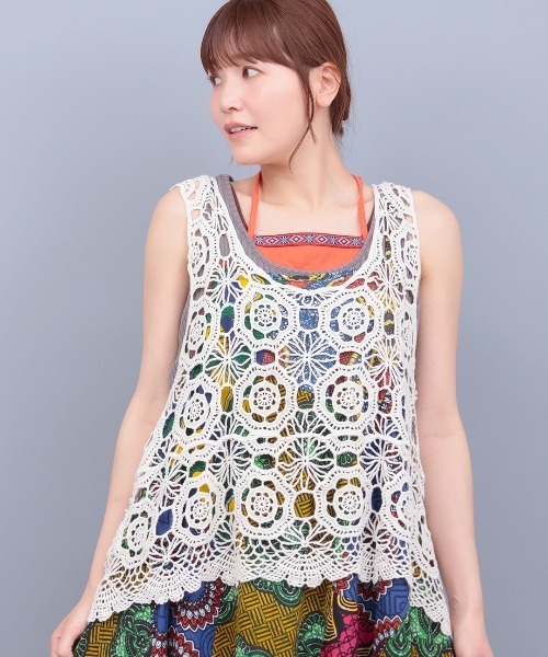 ナチュラルな雰囲気漂う、かぎ編み風ベスト ■デザイン ドライタッチなコットン糸のかぎ針編み風のベスト。 綿100%の素材で、涼しげでやさしい風合いと、さらりとした軽い着心地が魅力です。 ざっくりとしたお花モチーフの柄は甘すぎず、Tシャツなどに重ねてカジュアルに着こなせます。 ショートすぎずロングすぎない、絶妙なミドル丈でヒップ周りをふんわりカバー。 レイヤードスタイルがきまる、着回し力抜群の一枚です。 ■サイズ感 レディースフリーサイズ ゆったりとした身幅で、オーバーサイズのトップスとのレイヤードも◎ ■素材感 さらっとした肌触りの綿100%素材。 ドライな質感で快適に着られます。 ■スタイリング Tシャツやタンクトップに重ねるだけで、コーデの雰囲気ががらりと変わります。 デニムパンツやフレアスカートなど、定番のボトムスにも好相性。 ワンピースに重ねて、ナチュラルテイストな着こなしもおすすめです。 レイヤードするだけでスタイリングを格上げしてくれる、マストバイな1枚です。 ■カラー チャコールグレー/グリーン/ナチュラル ■お手入れドライクリーニング --------------------------------- 透け感:透ける 伸縮性:あり 裏地 :なし 光沢 :なし 生地の厚さ:普通 ポケット:なし --------------------------------- 【お取扱い上のご注意】 この製品は、大変デリケートな素材ですので、取り扱いにご注意ください。 ・洗濯は取り扱い絵表示の方法をお守りください。 ・素材の特性上、引っ掛かりやすい構造になっておりますので、着用時の引っ掛けに十分ご注意ください。 クリーニングによって多少縮むことがあります。 保管の際は、伸びる可能性がありますので、ハンガーに掛けずに平らに保管してください。 ・製品染めの為、一点一点に微妙な色、風合い、サイズなどの違いがあります。また、多少の色ムラが生じることがあります。予めご了承ください。 ・染料の性質上、水や汗などで湿った状態、 及び摩擦により色移りする恐れがありますのでご注意ください。 ・洗濯の際は、単独洗いしてください。 ・汗により他の製品に色移りしますので、 白や淡色物との組み合わせはお避けください。 ・光(電気や日光)により変色しますのでご注意ください。 【TITICACAのお買いものをお楽しみいただくために!】 ▼商品のお気に入り登録 完売カラーの再入荷通知や、ラスト1点の通知、セールの通知も受け取ることができます。 ▼ブランドのお気に入り登録 新商品や再入荷など、いち早くブランドのお得な情報を受けることができます!