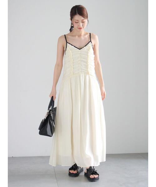 フリルギャザーの柔らかなボリューム感が可愛らしいキャミワンピース。ふわりと軽やかに広がるフレアシルエットも、女性らしい優しげな雰囲気を演出してくれます。シンプルに着るのはもちろん、Tシャツやカットソーをインナーに合わせたりと、コーディネートの幅も広がるアイテムです。※商品画像は、撮影環境やお客様のご利用のPC・スマートフォンのモニター環境などにより実物と色味に差異がある場合がございます。★《お気に入り登録》でお得な情報をGET★① 商品ページ内のハートマークをクリック!② 以下通知が受け取れます!「再入荷」「ラスト1点」「特別セール」etc..\ブランド、ショップのお気に入りも是非!/