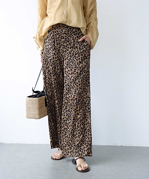 レオパード柄ワイドパンツ程よくエッジを効かせたレオパード柄が、大人の装いにアクセントを添えるワイドパンツ。存在感がありながらも上品さを忘れない、洗練された印象の一着です。■デザインのポイント・主張しすぎない落ち着いたカラーのレオパード柄で、コーディネートに取り入れやすい・ゆったりとしたワイドシルエットが、脚のラインを自然にカバー・ウエストゴム仕様で、ストレスフリーな穿き心地も魅力■素材の魅力・柔らかくしなやかな生地感で、動きに合わせて美しいドレープを演出・シワになりにくく、お手入れも簡単なイージーケア仕様■着こなしのヒント・シンプルな白や黒のトップスと合わせて、パンツを主役にしたスタイリングに・ジャケットを羽織れば、きれいめモードな印象に格上げ・Tシャツ&スニーカーを合わせた、抜け感のある大人カジュアルもおすすめ派手すぎず、地味すぎない。「柄で魅せる」大人の抜け感コーデにぴったりの一本です。着回し力も抜群で、オンオフ問わず頼れるアイテムです。--------------------------------------透け感:なし裏地:なし伸縮性:なしケア方法:手洗い可※お洗濯の際は洗濯表示を必ずご確認ください。--------------------------------------