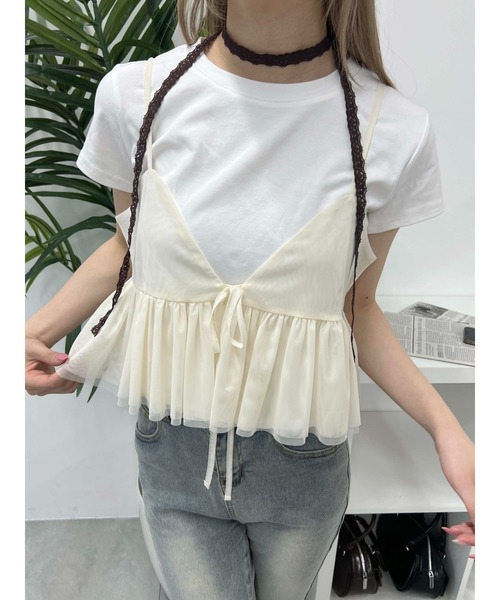 シンプルになりがちなTシャツコーデも チュールキャミソールをプラスして映えスタイルに◎ すっきりシルエットのパンツやタイトスカートはもちろんのこと プリーツスカートとの相性も抜群です。 短めの丈感でボトム選びに困らずコーデの幅も広がります ▼便利なお気に入り登録 商品のお気に入り登録で、再入荷の通知・ラスト1点・お得なセールの通知を受け取ることができます。 ブランドのお気に入り登録で、新商品や再入荷など、さらにお得な通知を受け取れます。 《Attention》 ・撮影はサンプル品を使用しており、実際の商品とは仕様や加工・サイズ等が若干異なる場合がございます。 ・撮影場所や照明の照射・角度、お使いのモニター環境により色味や仕様、加工、カラーが若干異なる場合がございます。 ・商品によっては1〜3cm程度の採寸誤差がある場合がございます。 ・移染等防止のため水や汗で濡れたまま放置することは避けて頂き、濃色アイテムは単体でのお洗濯をお願い致します。 ・素材臭がある場合は陰干しをお願いいたします。 ・アテンションタグを必ずご確認の上ご使用下さい。