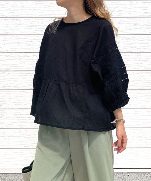 【WEB限定アイテム】 夏に活躍するコットン素材とエンブロイダリーの上品さが特徴のブラウスです。 通気性が良く、柔らかさと丈夫さを兼ね備えたモスコットン素材を使用しています。 細かい折り目が施され、上品な印象を与えるデザインが魅力的。 夏の暑い日にも快適に過ごせるためデイリースタイルにぴったりのアイテムで、乾きやすい素材の特性も嬉しいポイント。 流行に左右されないクラシックなデザインは、コーディネートの幅を広げ、活躍してくれそうな一着です。 《インフォメーション》 ◆商品のお気に入り登録 完売していても再入荷時に再入荷通知を受け取ることができますので、是非ご登録ください。 ◆ブランドのお気に入り登録 新商品や再入荷などの情報を受け取ることができますので、是非ご登録ください。