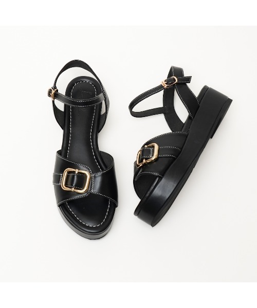 バックルプラットフォームサンダル(S153)ブラック、アイボリー、キャメルとどんなスタイルにも馴染むベーシックなカラー展開をご用意しました♪カジュアルっぽさを抑えて、綺麗めのスタイルにも合わせやすいデザインです!【POINT】・ベースがシンプルなサンダルにバックルと、さりげないステッチが大人可愛い♪・上品で足元が華奢見えするデザイン・安定して歩きやすいストラップ付き・フラットな4cmの厚底で楽ちんにスタイルアップが叶う