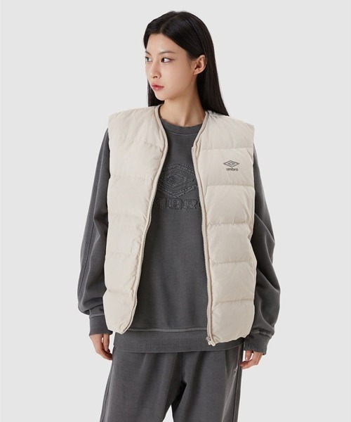 シンプルなデザインで幅広いシーンで着用可能な薄手のダウンベスト。