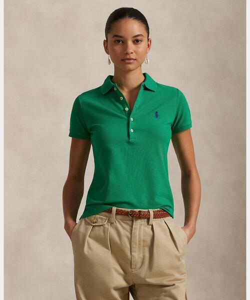 合計で982ステッチを要するシグネチャーのポニー刺繍をはじめとする細部まで行き届いた縫製や、通気性に優れたコットンメッシュのファブリックにより、1972年以来アメリカンスタイルのアイコンとして活躍してきたRalph Laurenのポロシャツ。軽くストレッチを効かせたスリムフィットと、魅力的な5つボタンの前立てを組み合わせたバージョン。 ・スリムフィット:ストレッチ感によりボディコンシャスなシルエットが引き立つスタイル。 ・リブのポロカラー。5つボタンの前立て。 ・半袖、リブアームバンド。テニステール。 ・左胸にシグネチャーのポニー刺繍。 ・シェル:コットン、エラステン / 襟とカフス:コットン。 ・モデル身長178cm、着用サイズS。 ※商品の色味は、光のあたり具合など諸条件により色感が多少異なって見える場合がございますので予めご了承下さい。 ポロ ラルフ ローレン