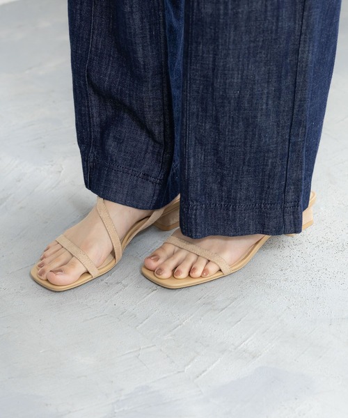 大人の抜け感。程よいヒールでラクにスタイルアップ内甲部分の一部を太くすることで安定感を高め、楽にスタイルアップできます。すっきりとしたカーブラインのデザインが上品な印象を与え、きれいめからカジュアルまで幅広く対応。バックルは5段階調整可能で、足元にぴったりフィットします。細いストラップでほど良い肌見せができ、足元に抜け感を加えるサンダルです。