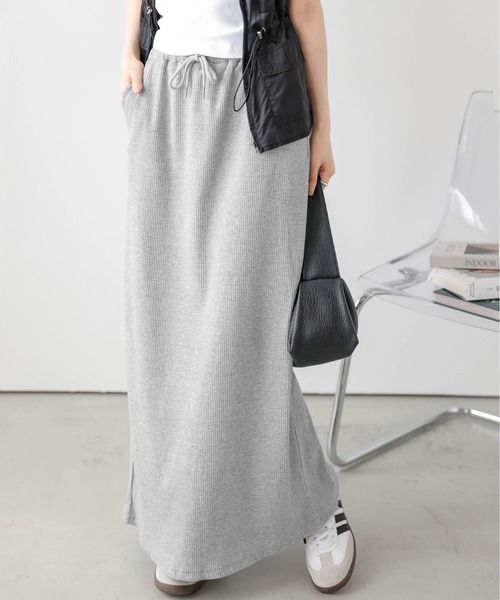 楽ちんなのに、美シルエット リラクシーな着心地にこだわった1着 リラクシーな着心地が 「やみつき」になるロングスカート とってもラクなのに、 すっきり細見えを叶えてくれる優秀さが◎ シンプルでどんなスタイルにも合わせやすいので つい手が伸びる、ヘビロテアイテムです。 Point 01 体型カバーしながら こなれ感を演出 程よくフィットしながらも体のラインを 拾いにくいサイズ感と、 しっかりと丈が あるシルエットがこなれ感をプラス。 普段スカートを穿かない方にも お召しになりやすいアイテムです。 Point 02 お休みの日から タウンユースまで◎ ウエスト総ゴム&紐で調節可能なので 幅広い骨格の方に着ていただけます。 デイリーにはもちろん、 アクティブ シーンにもぴったり! お休みの日やリラックスタイムにも 最適です。 バックスリット入りで 足さばきも良好◎ ■Fabric 伸縮性の高いカットリブ素材 柔らかく、 リラクシーな生地感 --------------------- 透け感:ベージュは若干あり 裏地:なし 厚さ:薄手 伸縮性:あり --------------------- ▼《お気に入り登録》でお得な情報がいっぱい▼ ・「商品のお気に入り登録」で再入荷通知や、ラストの通知、セール通知も受け取ることができます。 ・「ブランドのお気に入り登録」で新商品や再入荷など、お得な情報を受け取ることができます!