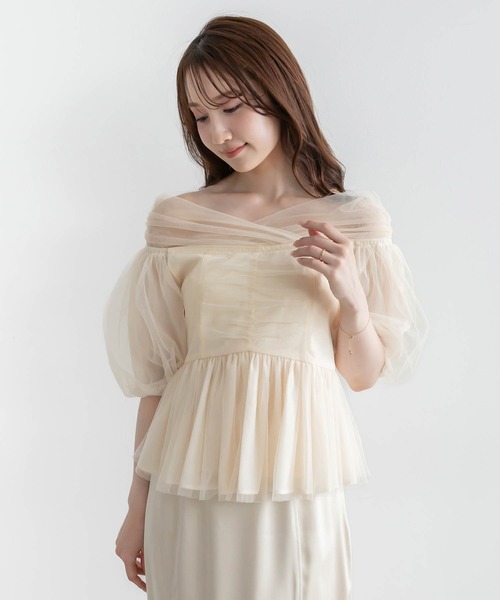 ◆2025SS新商品◆24SSで大人気だったチュールブラウスがアップデートして登場。ペプラムデザインが女性らしさを引き立たせてくれます。軽やかな透け感のある生地がシーズンムード高まる主役級トップスです。POINT・袖は生地を重ねることで透け加減を調整し、気になる二の腕をカバーしつつ軽やかな印象に・フロントにたっぷり施した華やかなギャザー・高めにウエスト切り替え位置を設定することで、気になるウエスト周りをカバーしスタイルアップ効果◎・程よくフィットするシャーリングゴム仕様でバックススタイルも綺麗なシルエットにCOORDINATEハイウエストパンツやシンプルなスカートを合わせるだけでトレンド感あるスタイリングが叶います。- - - - - - - - - - - - - - -洗濯方法:家庭洗濯可透け感:あり裏地:袖のみなし伸縮性:なし生地の厚さ:薄手- - - - - - - - - - - - - - -