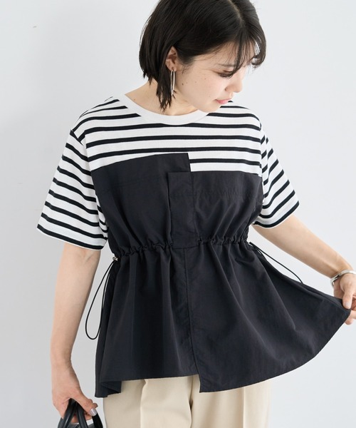 \お気に入り登録者数2,000人突破/ 『テクニック要らずで即お洒落!一枚で二度おいしい、表情豊かなビスチェドッキングプルオーバー』 ■デザイン ・シンプルなクルーネックの5分袖カットソーに、軽やかなナイロン素材のビスチェ風デザインをドッキング。 ・ビスチェ部分のサイドにはドロストコードを採用。 ・気になる二の腕をカバーする5分袖と、ヒップラインをさりげなく隠す着丈で、体型カバーを実現。 ■素材 ・本体コットンポリの柔らかな肌触りと扱いやすさを兼ね備え、さらりとした快適な着心地です。 ・ビスチェ部分:軽やかで程よいハリのあるナイロン100%素材を採用。立体的なシルエットを演出。 ■カラー展開 ・ブラック:ビスチェ部分のドッキングデザインが際立ち、モードで洗練された印象に。 ・チャコールグレー:落ち着いたトーンで、シックかつ大人なカジュアルスタイルを演出。 ・カーキ:こなれ感のあるアースカラーで、ミリタリーテイストを程よく取り入れ、スタイリッシュな印象に。 ・ボーダー:爽やかなボーダー柄カットソーに無地のビスチェをドッキングし、カジュアルながらもデザイン性の高い一枚。 ■コーディネート ・シンプルなストレートパンツやテーパードパンツと合わせるだけで、トップスを主役にしたバランスの良いコーディネートが即完成。 ・一枚でデザインが完結しているので、忙しい朝でも迷わずお洒落が決まる、頼れるアイテムです。 ■サイズ感 ・サイドのドロストコードでウエスト周りのフィット感を調整できるため、体型や好みに合わせてシルエットを変化させられます。 ・ヒップが隠れる程度の着丈で、気になる腰回りもカバーし、安心感のある着用感です。 ♦item keyword♦ #ビスチェドッキング#レイヤード#ドロスト#5分袖プルオーバー#異素材ミックス #シルエットアレンジ#体型カバー#ボーダー柄#夏ファッション#夏服#着回し 透け感[ややあり] 生地の厚さ[普通] 光沢感[ややあり] 伸縮性[なし] 裏地[なし] ポケット[なし] ※モデル着用画像は、光の当たり具合で色味が違って見える場合がございます。 ※お使いのモニター環境によって商品の色味が違って見える場合がございます。 ●Green Parks (fuuwa / topic / sara)● (グリーン パークス) 20以上の人気ブランドを取り扱う、全国に約320店舗展開するアパレルセレクトショップ。 ベーシックながらもさりげなくトレンドを取り入れたオリジナルブランドchocol raffine robeも展開。 ▼ 商品のお気に入り登録がおすすめです ▼ 商品ページ内のハートマークをクリック。完売時の再入荷や、最後の1点の通知、コーディネート画像がアップされたとき、お得なお値下げの際の通知を受ける事ができます。 【お知らせ】ページでも通知が確認できます。