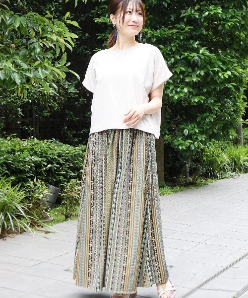 忙しい朝はこれで決まりっ!1枚でコーデが完結するドッキングワンピース ■デザイン 印象的なスカートとトップスがドッキングしたワンピース。 トップスは肩の落ちたルーズなTシャツでリラックス感を演出♪ スカートはパッと目を惹くオリエンタルな模様をストライプで表現しました。 軽やかなスカート生地を使用しているので、スカートがなびいて女性らしい印象に仕上がります。 ウエストにはゴムと紐が入っているので調節が可能です。 ■サイズ感 レディースフリーサイズ 程よくゆったりとしたリラックスできるサイズ感。 ■素材感 トップスは柔らかな綿100%素材で、インナー裏地が付いています。 スカート部分は軽いサラッとした素材で、柄が入っているので透けにくいです。 ■スタイリング レギンスやインナーでレイヤードするとコーデの幅が広がります。 足元には定番のスニーカー、アウトドアサンダルなどを合わせてスポーティーさをプラスしても◎ ■カラー ベージュ/ブラック/グリーン ■お手入れ洗濯機可 --------------------------------- 透け感:透けない 伸縮性:あり 裏地 :あり(トップス部分のみ) 光沢 :なし 生地の厚さ:普通 ポケット:なし --------------------------------- 【TITICACAのお買いものをお楽しみいただくために!】 ▼商品のお気に入り登録 完売カラーの再入荷通知や、ラスト1点の通知、セールの通知も受け取ることができます。 ▼ブランドのお気に入り登録 新商品や再入荷など、いち早くブランドのお得な情報を受けることができます!