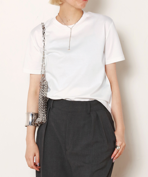 ワイドボトムの時にさっとバランスが整う、コンパクトサイズのTシャツ。 ご好評につき新色ネイビーを追加して追加発売! 襟ぐりの詰まり具合、袖付けのしわが出にくく綺麗に着れるTシャツです。 透けのない目の詰まった綺麗な表面感の生地が、クリーンな印象に見せてくれます。 ※照明の関係により、実際よりも色味が違って見える場合があります。 またパソコン・スマートフォンなどの環境により、若干製品と画像のカラーが異なる場合もございます。 ※商品の色味は、商品アップ画像をご参照ください。 本体:手洗い可能
