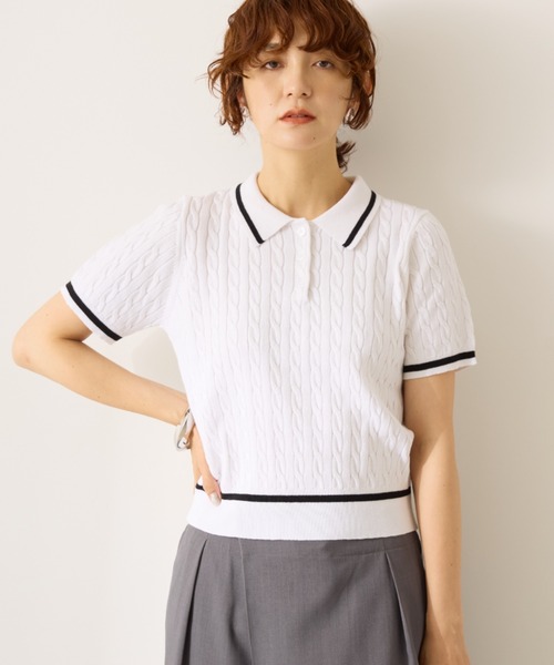 今季トレンドのスポーティームードを楽しめるニットポロシャツ。短丈でコンパクトながら伸縮性に優れた素材で仕立て、着心地も抜群です。 ボーダーはリブ編みボディ、その他カラーはケーブル編みボディと色ごとに雰囲気が変わるのも魅力。 ワイドパンツやスカートなどボリュームのあるボトムとの相性も良く、旬な着こなしが叶うおすすめのアイテムです。 透け感[ややあり] 生地の厚さ[普通] 光沢感[なし] 伸縮性[あり] 裏地[なし] ポケット[なし] ※モデル着用画像は、光の当たり具合で色味が違って見える場合がございます。 商品の色味は、物撮りの画像をご参照ください。 ●AMERICAN HOLIC ● (アメリカンホリック) 大人の女性の毎日を軽やかで豊かにするブランド。 カジュアルなのにオシャレ、コーディネートも楽。ONにもOFFにも等身大で楽しむオトナの日常着をテーマに、スタイリッシュかつ自然体を楽しめるカジュアルスタイルを提案します。 ▼ 商品のお気に入り登録がおすすめです ▼ 商品ページ内のハートマークをクリック。完売時の再入荷や、最後の1点の通知、お得なお値下げの際の通知を受ける事ができます。 【お知らせ】ページでも通知が確認できます。