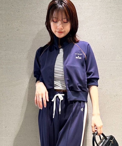 【LILY BROWN×MARY QUANT ハーフスリーブトラックジャケット】 【Design/Styling】トレンド感満載のトラックジャケットを、コンパクトなサイジングで仕上げました。軽やかなジャージ素材を使用し、夏の羽織としてもぴったりの一枚です。シアーインナーを合わせれば秋にも活躍し、コーディネートの外しアイテムとしても重宝します。カラーによって異なる配色が同じデザインでも印象を大きく変え、コーディネートのアクセントとして使えること間違いなし。胸元には「MARY QUANT」と「LILY BROWN」のブランド名に加えてデイジーマークの刺繍をさりげなくあしらい、細部までこだわりを取り入れました。トラックパンツ(品番LWCP254012)とのセットアップもおすすめです。【Fabric】軽快で通気性も抜群な軽めのジャージ素材を使用しました。ホワイト、レッド、ネイビーの3色展開です。 【LILY BROWN×MARY QUANT】60年代のストリートカルチャーを代表するMARY QUANTとのコラボレーション。マリンボーダーにギンガムチェック・ロゴモチーフなどレトロなディテールを上品に取り入れたリゾートにもタウンにも映えるアイテムを豊富なラインナップで展開します。※照明の関係により、実際よりも色味が違って見える場合があります。またパソコン・スマートフォンなどの環境により、若干製品と画像のカラーが異なる場合もございます。予めご了承ください。商品の色味は、商品単品画像をご参照下さい。 ※商品画像はサンプルのため、色味やサイズ等の仕様に変更がある場合がございますので、予めご了承ください。