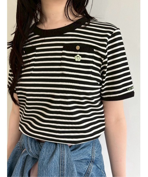 【LILY BROWN×MARY QUANT コンパクトTシャツ】 【Design/Styling】MARY QUANTとのコラボレーションで生まれたクラシカルなデザインのTシャツ。左胸にはブランドの象徴であるデイジーの刺繍が施され、シンプルながらもブランドらしさを感じさせます。ポケット付きで、実用性も兼ね備えたデザインです。コンパクトなサイジングとリンガーデザインが「LILY BROWN」らしく、デイリーに活躍するアイテムです。【Fabric】肌触りが良く快適な柔らかなコットン素材を使用しました。無地のホワイトとライトブルー、マリンルックなボーダーの3色展開です。 【LILY BROWN×MARY QUANT】60年代のストリートカルチャーを代表するMARY QUANTとのコラボレーション。マリンボーダーにギンガムチェック・ロゴモチーフなどレトロなディテールを上品に取り入れたリゾートにもタウンにも映えるアイテムを豊富なラインナップで展開します。※照明の関係により、実際よりも色味が違って見える場合があります。またパソコン・スマートフォンなどの環境により、若干製品と画像のカラーが異なる場合もございます。予めご了承ください。商品の色味は、商品単品画像をご参照下さい。 ※商品画像はサンプルのため、色味やサイズ等の仕様に変更がある場合がございますので、予めご了承ください。