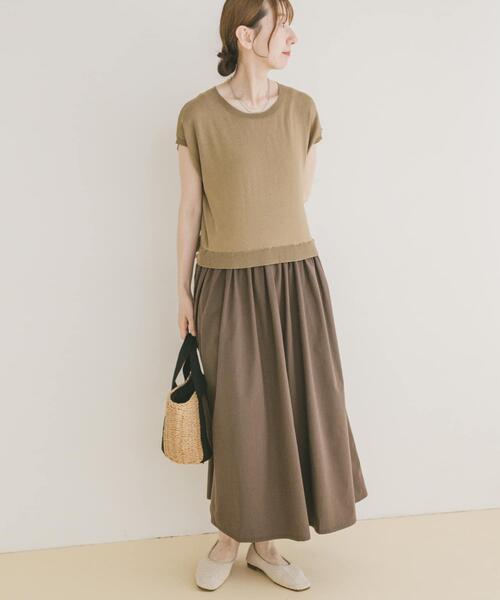 1枚でサマになる、異素材ドッキングワンピース。トップス部分はニット、スカート部分は落ち感のある布帛素材をドッキングした、メリハリのあるデザインが魅力のワンピース。フレンチスリーブで肩まわりはすっきり見え、ウエスト切り替えの位置も絶妙なので、スタイルアップ効果も◎素材のコントラストが、シンプルながらもこなれ感を演出してくれます。忙しい朝でもコーディネートが即完成する頼れる1枚。ワードローブに一枚あると大活躍間違いなしです。【2025 Spring/Summer】【25SS】総重量 : 約400g※商品画像は、光の当たり具合やパソコンなどの閲覧環境により、実際の色味と異なって見える場合がございます。予めご了承ください。※商品の色味の目安は、商品単体の画像をご参照ください。▼お気に入り登録のおすすめ▼お気に入り登録商品は、マイページにて現在の価格情報や在庫状況の確認が可能です。お買い物リストの管理に是非ご利用下さい。素材感透け感 : ややあり(BORDER)伸縮性 : あり(トップス)裏地 : なし光沢 : なしポケット : ありFREE