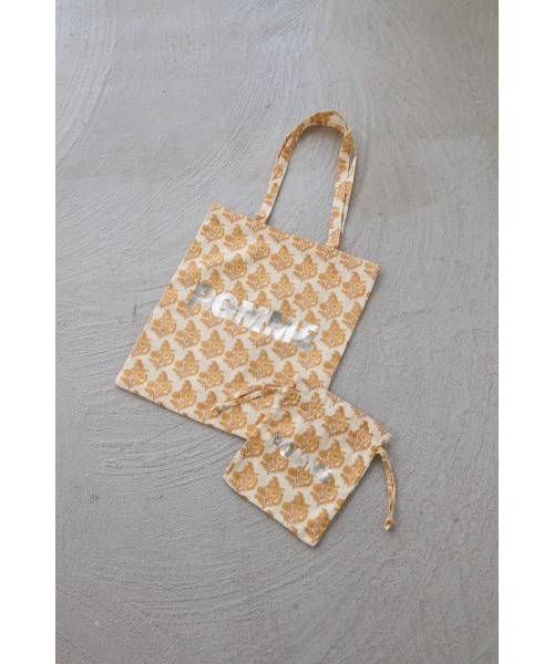 色違いで欲しくなる、夏のアクセントトート。カラーごとに異なる柄とロゴで、それぞれに個性が光るデザイン。セットの巾着ポーチも同じ柄で、ちょっとしたお出かけやバッグの整理にも便利です。長めの肩紐は、ボリュームのあるトップスやアウターの上からも楽に肩掛けできる仕様。素材には、やわらかさと程よいハリ感を兼ね備えたインドコットンを使用し、使い心地も◎。メインバッグとしてはもちろん、折りたたんでエコバッグとして持ち歩くのもおすすめ。夏のコーディネートをぐっと引き立てる、主役級のトートバッグです。