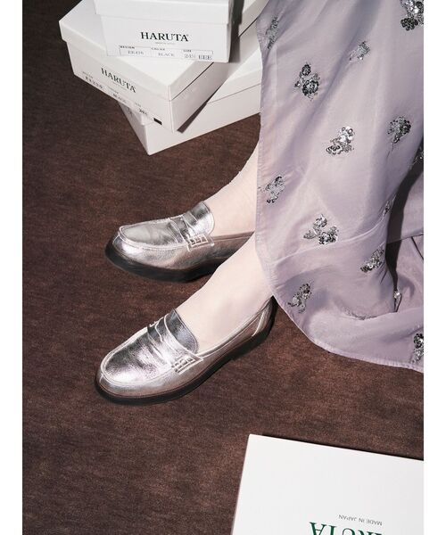 ≪HARUTA×ELLENDEEK(エレンディーク)コラボアイテム≫ LOAFERS 「大人HARUTA」のカジュアルローファーをELENDEEKらしいカラーリングと厚底仕様を取り入れたローファー。 スタイリングのアクセントとなるシルバーとホワイト、定番カラーのブラックの本革での3色展開。 HARUTAの履きやすいローファーのサイズ感はそのままに厚底を採用しスタイルアップ見えもしやすいデザインに。 [36サイズ]22.5cm [37サイズ]23.5cm [38サイズ]24.5cm【 お買いものにおすすめの便利機能! 】★商品のお気に入り登録完売カラーの再入荷時や、ラスト1点の時、セール開始時にお知らせします。★ブランドのお気に入り登録新商品や再入荷、セール情報など、いち早くブランドのお得な情報を受け取ることができます。ぜひご活用ください。※実際にお届けする商品と仕様やサイズが異なる場合がございます。また生産の都合上、お届け時期が前後する場合がございます。