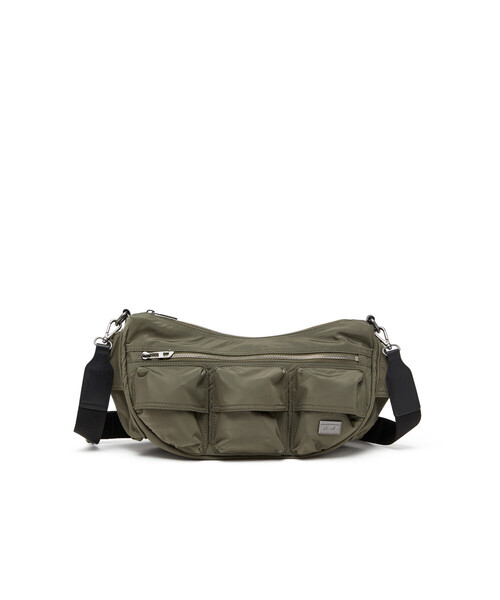 品番:X10355P8166ユーティリティなグループ「MULTI-PKTS」のクロスボディバッグ。グループ名の通り、複数のポケットとコンパートメントが特徴的で、実用性がありつつファッショナブルなビジュアルに仕上げています。それぞれのポケットが、中身の取り出しがしやすいように配置されているのもポイント。ライトウェイトでスポーティなポリエステル素材を使用しています。