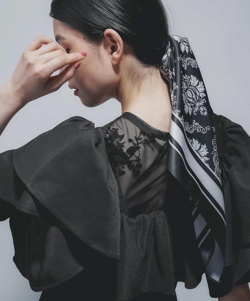 ーーー オリジナルの2種類の柄が目を惹く トレンドの総柄スカーフ ーーー point □オリジナルの柄が目を惹く、マルチWAYなスカーフ □程よく光沢感のある上品さで肌触りの良いポリエステル素材を使用 □大き目のサイズ感の為、首やバッグ、ヘアアクセサリーなど様々な用途で使いやすい □HAREらしいモードなスタイリングに合う柄目と色味にこだわったデザイン ・ブラック09:スカーフには珍しいダマスク柄で作成。ブラックをベースに、グレーがかったホワイトで柄を演出し、重厚感と高級感のある印象に。 ・グレー10:今期トレンドのウエスタンを彷彿させるカウ柄で作成。カジュアルになりすぎないよう、明るめグレーとドットのような配置で、モード感のある印象に。 styling 首に巻くのはもちろん、腰回りに巻くスタイルなどマルチに使えるアイテムです◎ トレンドのヘッドスカーフや、アップスタイルにターバン風など、ヘアアレンジにもオススメです。 シンプルなバッグにプラスオンしたクラシックスタイルにも。 ※加工を施した画像を使用しております。 実物と色味が異なる可能性があるため、色味は詳細後ろにある生地寄り画像を参考にお願いいたします。 あらかじめご了承下さい。