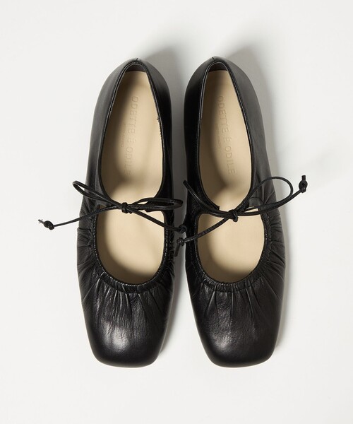 絞ったようなアッパーデザインが目を惹く一足 ■デザイン 甲部分で紐を結ぶデザインが特徴のバレエシューズ。 ギャザーを寄せたアッパーは上品な風合いとリラックス感を演出。 つま先は厚みを持たせたソフトスクエアにしているため、甘すぎずスッキリとした印象に仕上げています。 やわらかい足当たりと軽やかな履き心地も魅力です。 ■素材 本革を使用。 ブラックとホワイトはスムース素材、シルバーは箔素材です。 ■コーディネート 素足はもちろん、ソックスに合わせて遊び心のあるコーディネートもおすすめです。 【注意事項】 ※画像の商品はサンプルです。 ※商品画像は、光の当たり具合やパソコンなどの閲覧環境により、実際の色味と異なって見える場合がございます。あらかじめご了承ください。 ※ソールに保護シートが貼られている場合は剥がしてご使用下さい。 ※かかと部分にある1ミリ程度の小さな穴は、生産工程上発生するものであり、不良品ではございません。 ※シューズの重量は、シューズ本体のみ両足の重量となります。箱や付属品は計測に含まれません。 ※商品に不良が無い場合、包装紙および箱の破損がございましても発送いたします。あらかじめご了承ください。 店舗へお問い合わせの際は、全国のODETTE E ODILE各店舗まで下記の品名/品番をお申し付けください。 品名:OI ギャザートップバレエFLT10↑ 品番:45162000009