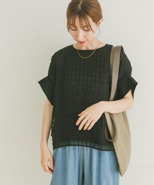 透け感を楽しむ、大人のシアーチェックブラウス。 繊細な透け感のあるチェック柄が、コーディネートにほどよい華やかさを添える一枚。内側に下地を重ねているため、軽やかな素材感を楽しみながらも、透けを気にせず安心して着ていただけます。さらりとした風合いとほどよいハリ感がシルエットに立体感を生み、上品さとトレンド感を両立。やわらかな甘さのライトベージュと、落ち着きのあるブラックの2色展開です。 【2025 Spring/Summer】【25SS】 ※商品画像は、光の当たり具合やパソコンなどの閲覧環境により、実際の色味と異なって見える場合がございます。予めご了承ください。 ※商品の色味の目安は、商品単体の画像をご参照ください。 ▼お気に入り登録のおすすめ▼ お気に入り登録商品は、マイページにて現在の価格情報や在庫状況の確認が可能です。 お買い物リストの管理に是非ご利用下さい。 素材感 透け感 : ややあり 伸縮性 : なし 裏地 : あり 光沢 : なし ポケット : なし FREE