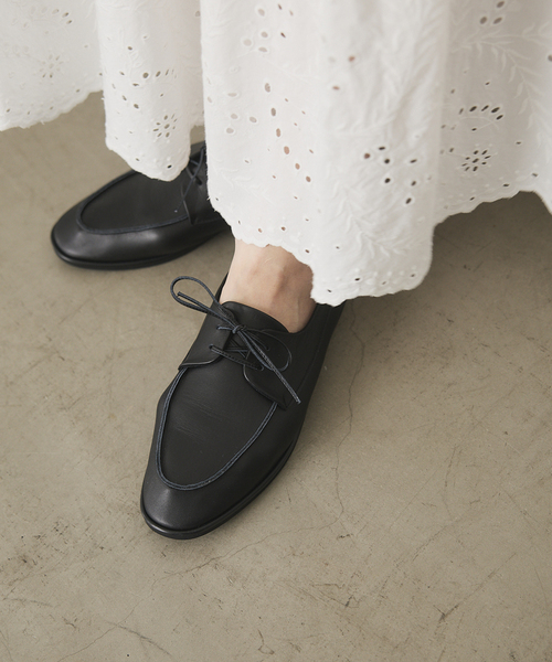 ※カラーについて弊社販売カラー名:メーカーカラー名ブラック(001):BLACK※サイズについて弊社販売サイズ名:メーカーサイズ名36(360):3637(370):3738(380):38マルチに活躍するレースアップローファー。シャープで丸みのあるフォルムでメンズライクになりすぎず、カジュアルなスタイルにはフェミニンなアイテムとも相性抜群。柔らかいラムレザーを使用しているため、足の負担になりにくく気軽に履けるローファーです。インソールはクッション性もあり疲れにくいのもうれしいポイント。※取り扱いについては、商品についている品質表示でご確認ください。※こちらの商品は、Spick & Spanでの取り扱いになります。 直接店舗へお問い合わせの際は Spick & Span店舗へお願い致します。※照明の関係により、実際よりも色味が違って見える場合があります。またパソコン・スマートフォンなどの環境により、若干製品と画像のカラーが異なる場合もございます。※商品の色味は、商品アップ画像をご参照ください。
