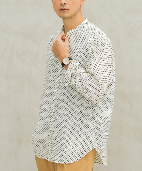 ・フランスのヴィンテージナイトシャツをデザインベースにしたバンドカラーシャツ・滑らかでとろみのあるポリエステル生地を使用し、シルクのような肌触りと上品なドレープ感を実現・着用時の快適さが際立ち、一般的なシャツとは異なる抜群の着心地・形態回復性に優れ、アイロン不要で手入れが簡単なストレスフリー素材・リラックスフィットを採用し、肩は落としすぎず袖を長めにとった大人の余裕を感じさせるシルエット・背面にボリュームを持たせたパターン設計で、後ろ姿にも存在感を演出・浅めのバックヨークやギャザー使い、ハンガーループなど細部までこだわりが詰まった仕立て【ご注意】※商品の色味につきまして、お客様のお使いのPCのモニター環境により実際のカラーと画像の色味が違って見える場合が御座います。予めご了承の上、ご注文下さい。※店頭・外での撮影画像は光の加減で、実際の商品より明るく見える場合が御座います。商品の色味は生地のアップ画像をご参照ください。本体:手洗い可能