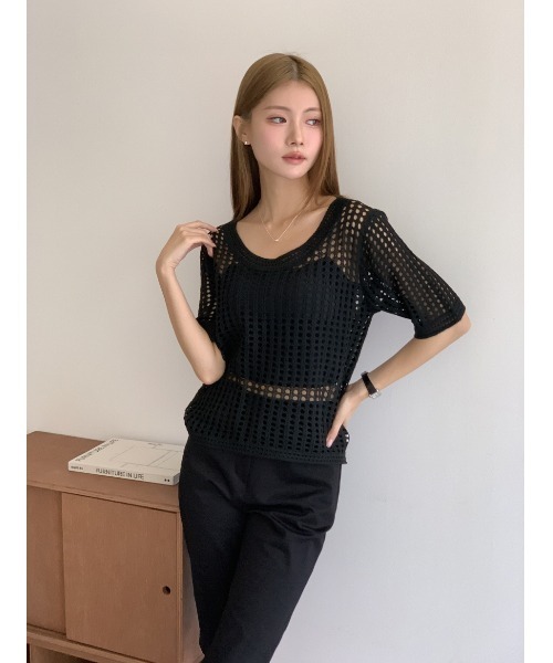 MINS MINIS (ミンスミニス)【素材・サイズ感】ゆるメッシュの編地が軽やかで涼し気な印象を与えるニットプルオーバー。デコルテを綺麗に魅せるネックラインや、ゆるっとしたシルエット。メッシュ透かし編みにし、ざっくりとした軽い見た目が特徴です。透け感のあるメッシュ生地でソフトな肌触りとふんわりナチュラルな風合い。メッシュ編み仕様なので夏でも通気性抜群。【デザイン・スタイリング】ルーズなサイズ感でありながら、シアー感が抜け感のあるスタイルを作り上げます。体型カバーの叶うゆったりめのシルエットで1枚で着映えするメッシュ透かし編みのシアーニット。インナーにはキャミソールを合わせるのはもちろん、タートルネックのトップスや柄、シースルーのトップスなどをレイヤードするのもおすすめです。スラックスやジャケット、カートなどのあえてテイストの違ったアイテムと合わせてハズシのアイテムとして取り入れるのもおすすめです。------------厚み 普通透け感 あり伸縮性 なし光沢 なし------------※商品画像は撮影時の光や角度により、実物の色味と異なって見える場合がございます。※画像は光の当たり具合やパソコンなどの環境により色味が異なって見える場合がございます。予めご了承ください。〈商品のお気に入り登録〉お気に入りの登録をして頂きますとセールの通知・ラスト1点になった時の通知や、再入荷通知を受けることができます。〈ブランドのお気に入り登録〉新商品の発売や再入荷、タイムセールやクーポン発行のお知らせなどMINS MINISが、お届けするお得な情報を受け取ることができます。
