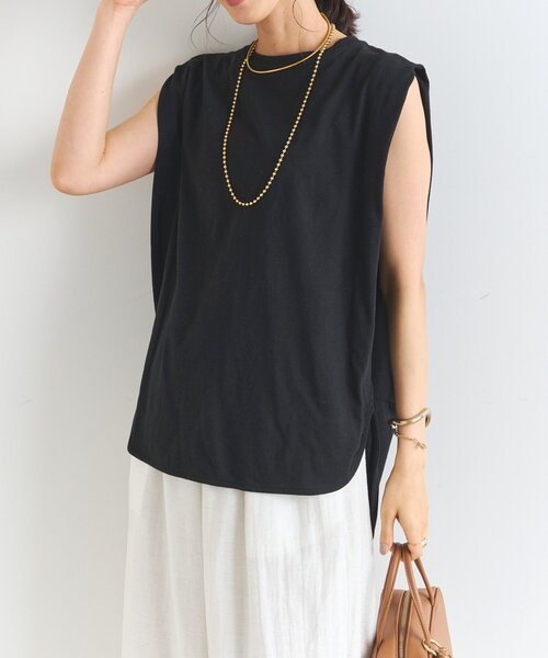 シンプルなカジュアルスタイルに商品ポイント・デイリーに活躍するベーシックさでありながら、肩タックによって作り出される立体感のあるシルエットがお洒落なポイントに。・綿麻素材で涼しく、着心地はサラっと肌触りが気持ちがいいのも魅力です。・ボトムを選ばず合わせられるので、コーデの幅がぐんと広がります。おすすめコーディネートカジュアルにもキレイめにも両方オススメですので、パンツ、スカートどちらにも合わせていただけます。ワイドパンツを合わせた抜け感のある大人のラフスタイルは、休日コーデとしてもおすすめです。おすすめスタイリングアイテム撥水加工・接触冷感タックギャザーフレアスカートオーバーダイバギーパンツ《リラクシーな履き心地》麻調ワイドパンツデニムタイトスカート素材綿75%麻25%洗濯方法:手洗い可透け感:ややあり裏地:なし伸縮性:あり生地の厚さ:やや薄め光沢:なしポケット:なし《Q&A》Q1:着丈が気になります。身長160センチ前後のスタッフが着用して、コンパクト過ぎず丁度良い丈感です。Q2:透け感はありますか?濃色のブラックやチャコールグレーに関しては透け感はさほどありませんが、ホワイトは少し気になる場合がございます。インナーキャミソールやタンクトップと合わせて着用いただくのがおすすめです。Q3:二の腕が出るのが少し心配です。袖口に程よくゆとりがあり、生地が肩にかけて少し覆われるようになっています。ノースリーブとはまた違った、二の腕が少しだけカバーされるようなデザインです。【スタッフ着用コメント】《なの》身長:162cm/着用サイズ:F体型:普通/骨格:ウェーブ/パーソナルカラー :イエベ春着心地がよいので、これからのシーズンに大活躍間違いなしです◎ワードローブに1着持っておきたいアイテムです。骨格タイプ骨格ストレート:全体的に立体型で筋肉質。ひざ下はすらっと細め。ボディラインにメリハリがある。骨格ウェーブ:上半身が薄く、華奢。緩やかな曲線のボディライン。下半身に重心があり女性らしい体型。骨格ナチュラル:筋肉や脂肪があまり感じられない体型。腰の位置が高く骨や関節が目立ちやすい。--------------------------------------------------------------------------------【注意点】※画像の商品は光の照射や角度、お使いのモニター環境により、実物と色味が異なる場合がございます。※入荷状況により、お届け予定が前後する場合があります。※工場の生産の都合上、納期が変更になる場合がございます。検品や輸送の関係で、発送日が前後しますのでご了承ください。 また、入荷状況により、お客様への発送が店頭販売より遅れる場合もございます。※追加生産商品は、一部の店舗、通販で販売中の場合がございます。予めご了承下さい。※サンプルでの撮影、計測をしております。商品の仕様が一部変更になる場合がございます。※撮影サンプル品はブランドタグがついておりません。製品にはタグがつきますので、製品の表に縫い糸が見える場合がございます。--------------------------------------------------------------------------------【お買い物をもっと便利に楽しく♪】『ハート』をクリックでお気に入り登録〇「商品のお気に入り登録」で・・・ ラスト1点や再入荷の通知が届きます。登録して頂いた商品だけが対象となる、あなただけのタイムセールが開催されることも!〇「ブランドのお気に入り登録」で・・・ 新商品や再入荷など、いち早くブランドのお得な情報を受け取ることができますので、ご登録をおすすめします!--------------------------------------------------------------------------------