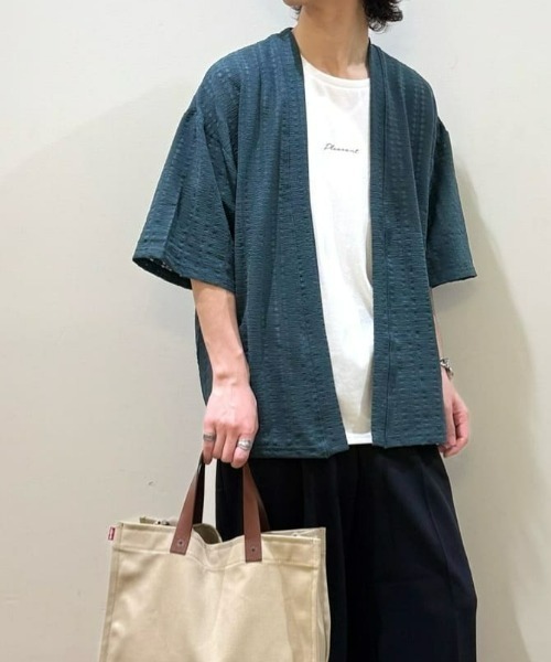 軽やかさと遊び心、あなたの夏コーデにベストマッチ。【仕様】程よく透け感のあるジャガード生地を使用した五分袖カーディガンとシンプルな半袖Tシャツのアンサンブル。ややゆったりとしたシルエットで、リラックスした雰囲気を演出します。どんなスタイルにもミックスしやすい万能アイテムです。【素材】アウターのジャガード生地は、通気性が良く、軽やかな着心地を実現。透かし編みのデザインは動きに応じて美しい影を作り出し、シンプルになりがちなコーディネートに遊び心を加えます。肌触りも良く、長時間の着用が快適です。 【スタイリング】 デニムやリネンパンツとのコーディネートがおすすめ。カーディガンを羽織ることで、シンプルなスタイルに奥行きを与え、軽やかな印象に仕上げます。また、ベーシックなアクセサリーを重ねることで、洗練された雰囲気をさらに引き立てます。 ■スタッフコメントMEN:172㎝(着用サイズ:L)♦️セット商品なので、最速簡単オシャレに!!🔹コーディネートに取り入れやすいカラーで、ブラックやベージュのボトムス、濃色のジーンズなどでも◎MEN:175㎝(着用サイズ:L)羽織とTシャツがセットになったアイテムです!夏カラーのグリーンで鮮やかな色合いになってます!中のTシャツが透ける透かし編み仕様になっているため、トレンド感を持って着られる点が推しポイントです👀また、このセット通りに着用することで、トップスコーデが組めるので、コーデを簡単に組める点も嬉しいポイントです🙆もちろん、別々でも使えるので、コーデの幅を広げることもでき、とてもおすすめです‼︎・"サイズ感"→→Lサイズ着用(175cm)で程よい丈感で着用できました。程よいサイズ感で着たい方はLサイズ、オーバーサイズめで着たい方はXLサイズがおすすめです。・ "着用感"→ →素材は羽織:ポリエステル、ポリウレタンの混合材、Tシャツ:ポリエステルと綿の混合材です。どちらの生地も柔らかく、とても楽に着用できます。ーーーーーーーーーーーーーーーーーーーーーーーーーーーーお得に&便利にお買い物を楽しむポイント♪▶商品のお気に入り登録( ♥ハートマーク をクリック)お気に入りアイテムの完売カラーの再入荷通知や、ラスト1点の通知、セールなどの情報をいち早くお届け。▶ショップ・ブランドのお気に入り登録新商品や再入荷、クーポン配布などお得な情報を随時お届け。ーーーーーーーーーーーーーーーーーーーーーーーーーーーー