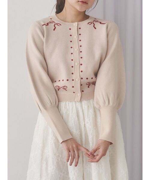 ■デザイン 並んだリボンとさりげないドットがアクセントになったコンパクトシルエットなニットカーディガン。 もちっとした肌触りのハイゲージニットは、 ぎゅっと詰まった編地で風を通しにくく軽やかなのにあたたか。 ■サイズ コンパクトなサイズ感ですっきり着用いただけます。 ■スタイリング コンパクトなシルエットなのでボリューム感のあるスカートなどとの合わせがおすすめです。 【商品情報】 透け感:なし 裏地:なし 伸縮性:あり 光沢感:なし 生地の厚さ:普通 【商品のお気に入り登録】 ♡をクリック! 完売カラーの再入荷や、ラスト1点の通知、 セールの際の通知も受け取ることができます。 【ブランドのお気に入り登録】 新商品や再入荷など、 merryの情報をいち早くお知らせします! ぜひご登録ください♡