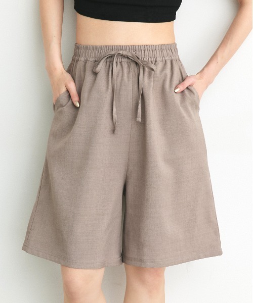 カジュアルになり過ぎない大人ハーフパンツ≪マストな"抜け感"ハーフパンツ≫楽なのにしっかりお洒落、リラクシーな雰囲気に仕上がる1本です。■point・ウエストゴムと調節可能な外紐付き・ゆったりとした腰回りでストレスフリーな着用感・短すぎず、大人女性も履きやすい丈感・サイドポケット、後ろポケット付きで利便性も抜群■detailドライタッチな風合いで夏場もサラっと着用できます。きちんと感あるシルエットでメンズライクな雰囲気ながらもカジュアルになりすぎず、大人っぽく仕上がります。■fabricサラっと高級感のある生地感………………………………伸縮性:多少あり透け感:なし裏地:なしポケット:あり………………………………■混率ポリエステル 100%原産国:中国■coordinateオーバーサイズのシャツや程良くカジュアルなジャケットでラフながらも綺麗めに着こなすのがおススメです。夏場はトレンド感あるアメスリタンクなどでヘルシーな着こなしも◎足元はスニーカーからパンプス、ブーツまでマルチに合わせることができます。■SNS情報@adthie.official【公式】Instagramでも新着アイテム&トレンドアイテムを毎日発信中!!洗濯表記【洗濯処理】水温30℃を限度に、洗濯機で弱い洗濯ができます【漂白処理】漂白できません【タンブル乾燥】タンブル乾燥禁止です【自然乾燥】日陰で、吊り干しします【アイロン仕上げ】120℃を限度に、アイロンが使えます【ドライクリーニング】ドライクリーニングできません【ウエットクリーニング】非常に弱い操作による、ウエットクリーニングができます【洗濯表記説明文】洗濯ネット使用Attention【お取り扱い上のご注意】この製品は非常にデリケートな生地を使用しております。そのため、激しい運動や強度な力が加われば縫い目が開いたり、目寄れ(織り糸が滑り目が開く)する性質があります。またベルトやバッグ、周囲の壁など、表面の粗いものとの摩擦による引っかかりにもご注意下さい。