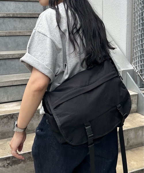 【大人気撥水メッセンジャーバッグがナイロン素材になって新登場】ソフトナイロンシリーズからNEWバッグの登場です。調整可能な太めのストラップにより服装やコーデに合わせて調節でき、長時間背負っていても肩に負担がかからず快適に持ち運べます。大きく開くメインポケットは、ノートパソコンやA4サイズも収納できる大容量で取り出ししやすいのも特徴です。内側は、メインポケットのほかにポケットが2つ、ジップ付きのポケットが1つ付いているので小物なども整理整頓して収納することができます。フラップ部分とフラップを開けたフロント側にジップ付きのポケットが付いているので、すぐに取り出したいアイテムも安心して収納できます。体と接する部分には、メッシュ素材でクッション代わりになるデザインに仕上げているので、硬いものや鋭利なものを入れても体への負担はかからず快適に背負っていただけます。持ち運ぶものが多かったり移動時間が長い学生や、荷物の多くなるシーンに特におすすめです。ショルダー部分にはDカンがついているので、カナビラやストラップなどをつけて自分らしくアレンジできるのもこのアイテムの魅力です。【ソフトナイロン】ナイロン素材は撥水があり強度が高く耐久性に優れた素材として知られていますが、このショルダーバッグはその特性を活かしつつ、よりしなやかで柔らかな手触りを持つように加工されたソフトナイロンを使用しております。また体にフィットしやすい素材感で軽量で速乾性にも優れているため、日常生活だけでなく旅行やアウトドア、スポーツシーンでも活躍します。柔らかい素材を使用しているので、コンパクトに畳んだり丸めて持ち運びすることも可能です。【商品ポイント】・日常生活だけでなく旅行やアウトドア、スポーツシーンでも活躍・ノートパソコンやA4サイズも収納可能・軽量で耐久性に優れた素材を使用・メインポケット:1つ、内ポケット3つ(オープンポケット2つ、ジップ付きのポケット1つ)、フロントポケット1つ。フラップ付きポケット1つ【ソフトナイロンシリーズ】・CMG2051312A0001 ソフトナイロンバックパック・CMG2051312A0002 ソフトナイロンショルダーバッグ・CMG2051312A0003 ソフトナイロンナップサック・CMG2051312A0004 ソフトナイロンミニショルダーバッグ----------------------------------------------------■素材本体: ナイロン, 裏地: ポリエステル----------------------------------------------------※着用、お取り扱いの際は、商品についている品質表示とアテンションタグを必ずご確認下さい。※商品タグに記載されている商品名がWEBでの表記名と異なる場合があります。※実際の商品と仕様、加工、サイズが若干異なる場合がございます。※照明の関係により、実際よりもやや明るく見える場合がございます。またパソコンなどの環境により、若干製品と画像のカラーが異なる場合もございます。予めご了承くださいませ。【お気に入り登録】してお得な情報をCHECK!!・「商品のお気に入り登録」で再入荷通知や、ラストの通知、セール通知も受け取ることができます。・「ブランドのお気に入り登録」で新商品や再入荷など、お得な情報を受け取ることができます。