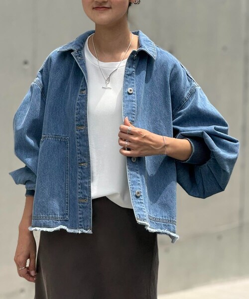 ■アイテム袖がパフデザインになった大人のデニムジャケット。今回は新たに小さいサイズ(0サイズ)が登場。程よく柔らかさのある生地と、絶妙な色落ち感が魅力の一着。袖口はリブになっているので、たくし上げるとふんわりとしたボリューム感が出て女性らしいシルエットに。裾は切りっぱなしの仕様でラフな雰囲気があり、甘くなり過ぎない印象に。どんなスタイルにも合わせやすく、カジュアルにデニムonデニムスカートやワンピースに羽織るのもおすすめです。■素材・洗濯表示素材本体:綿100%リブ部分:綿98% ポリウレタン2%洗濯表示:手洗い可※着用時・洗濯時は、必ず取扱い表示・タグをご確認の上、お取り扱い下さい。-----------------------伸縮性:あり光沢:なし厚み:ふつう透け感:なし裏地:なしポケット:ありファスナー:なし-----------------------《お取り扱い上のご注意》・タンブル乾燥不可・色落ちしますので、他のものと分けて洗濯してください。着用時、白物・淡色衣類への色移りには充分ご注意ください。・インディゴ染め、ダメージ加工の工程で溶剤を使用する為、特有のニオイがする場合がございます。特に店頭に陳列されずに、工場から袋詰めされて到着した製品は、ニオイを強く感じる場合がございます。お洗濯を繰り返して頂いたり、風通しの良い場所で陰干しして頂くと、数日でニオイが和らぎます。【インディゴ】・この製品は染色の特性上、着用中の摩擦や汗などにより他の衣料や下着、淡い色のベルトやカバン、靴、ソファーなどに色移りする場合がありますのでコーディネートや取扱いにご注意下さい。・下着やインナーなどは同系色の着用をおすすめします。・色落ちしますので洗濯の際は他の物と一緒に洗わないでください。・塩素系漂白剤や蛍光増白剤配合の洗剤をご使用にならないでください。・長時間濡れたままにすると色が落ちたり生地が縮むことがあります。洗濯後は形を整えてすぐに陰干ししてください。・日光や照明などに長時間あたると変退色することがあるので、高温多湿を避け光のあたらない場所で保管してください。・色移りすることがあるので、他の衣類と分けて保管してください。《予約商品について》・サンプルの為、素材情報、洗濯表示については企画段階の情報を記載しております。公的機関での試験データ結果を受け、量産にあたり混率や洗濯方法の変更が発生する場合がございますので、ご了承くださいませ。・サンプルでの撮影、計測をしております。商品の仕様が一部変更になる場合がございます。・撮影サンプル品はブランドタグがついておりません。製品にはタグがつきますので、製品の表に縫い糸が見える場合がございます。・工場の生産の都合上、納期が変更になる場合がございます。検品や輸送の関係で、発送日が前後しますのでご了承ください。また、入荷状況により、お客様への発送が店頭販売より遅れる場合もございます。・店頭に陳列していた商品も含まれる場合がございます。《商品画像について》ご覧頂いている商品の写真につきましては、できるだけ実物の色に近くなるように努めておりますが お使いの環境(モニター、ブラウザ等)の違いにより、色の見え方が実物と若干異なる場合がございます。 予めご了承ください。《ハートをタップして商品のお気に入り登録》登録カラーの商品の「残りわずか」「再入荷」「値下げ」通知を受け取ることができます。各ショップアプリにてブランドフォロー 新商品などの入荷情報、最新のニュースやお得な情報を受け取ることができます。
