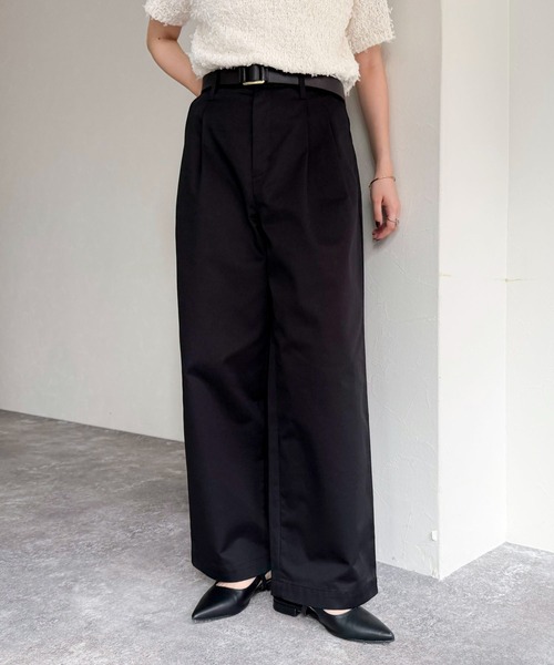 ほどよい抜け感ときちんと感を兼ね備えたチノパン●point・ややハリ感のあるチノ素材を使用し、上品さとカジュアルさを両立したワイドパンツです・2タックデザインが腰まわりに立体感を持たせ、体のラインを拾わず美しいシルエットを演出します・ワイドストレートのゆったりとしたシルエットが脚のラインをカバーしつつ、リラクシーな穿き心地を実現・トップスを選ばず着回しやすく、シャツやニットとの相性も抜群です・しっかりとしたチノ素材で季節を問わず活躍!・タウンユースはもちろん、オフィスカジュアルにもマッチする万能な一本です透け感:なし裏地:なし伸縮性:なし光沢感:なし●お取扱い上のご注意●*商品を長くご愛用していただきたいため、アテンションタグがある場合は必ずご確認の上、着用又はお取り扱い下さい。*画像の商品はサンプルとなりますので実際の商品と仕様(主にファスナー・釦等の付属品)、加工、サイズが若干異なる場合がございます。*店頭及び屋外での撮影画像は、光の当たり具合で色味が違って見える場合があります。商品の色味は、スタジオ撮影の画像をご参照下さい。*商品画像に関しては出来る限り忠実に表示出来るよう努めておりますが、お客様がご利用のモニターの設定及び特性により、実際の商品と比較し色味に若干の誤差が生じる場合があります。*製品洗い加工の商品は、多少の歪み、シワなどが見られたり、風合いやサイズ等が1枚1枚異なります。汗や雨等で濡れた時や、摩擦により色落ちし、他の衣料を汚すことがありますので(特に濃色のもの)ご注意ください。◇商品のお気に入り登録◇気になる商品は、お気に入り登録がオススメです!クーポン情報、入荷情報が、通知されるようになります。【マルチサイズとは】豊富なサイズ展開のため、「骨格ストレート/骨格ウェーブ/骨格ナチュラル」など様々な体型の方も、自分に合った1枚が見つかる新しい洋服の買い方です。「低身長~高身長」「やせ型~ぽっちゃり」など小さいサイズから大きいサイズまで、最大56サイズご用意しています。定番アイテムから、ビッグシルエットなどのトレンドアイテムまで幅広く展開中!※マルチサイズは、ZOZOTOWNのみでのお取り扱いになります。※サンプル品で撮影しているため、ボタンやファスナーなど一部の仕様が若干異なる場合がございます。