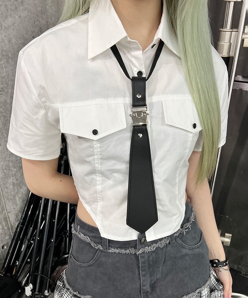 【PUNKコーデにぴったりなクロップドタイシャツ】 付属のネクタイは着け外し可能なので シンプルにシャツとしても使える優れもの。 メインとしてはもちろん、レイヤードコーデにも使えるので 一枚あると便利なアイテムです。 ■detail ・半袖 ・クロップドシャツ ・アジャスタータイ(つけ外し可能ネクタイ) ・フェイクポケット ・ショート丈 【商品画像について】 ※画像はサンプルです。実際の商品と仕様、加工、サイズ、カラーが若干異なる場合がございます。 また、撮影場所や照明の照射・角度、お使いのモニター環境によりお色味が異なる場合がございます。 予めご了承ください。 《お気に入り登録》 ・「商品のお気に入り登録」で再入荷通知や、ラスト1点の通知、セール通知も受け取ることができます。 ・「ブランドのお気に入り登録」で新商品や再入荷など、いち早くブランドのお得な情報を受け取ることができます。 【Figments/フィグメンツ】 ファッション、音楽、カルチャー。 時代とともに変化を楽しむ者たちに向けた、 Realityを覆し、常識を壊すユニセックスファッションブランド。