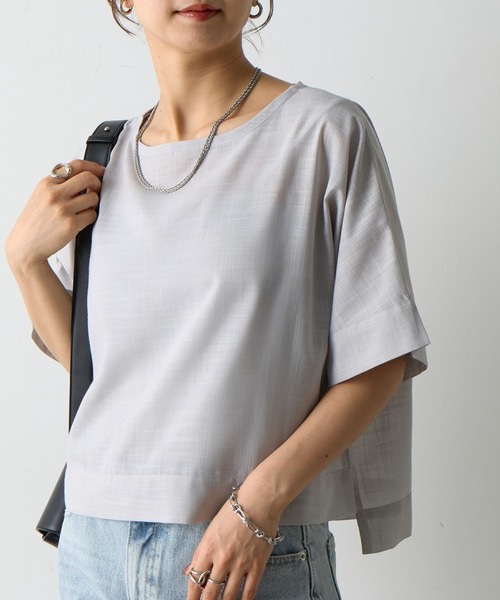【着回し力抜群!リネンライクのシンプルデザイントップス】 リネンライクな風合いと使いやすいシンプルシルエットが魅力の、大人のためのデザイントップスが登場。 見た目は涼しげで上品なリネンのようでありながら、素材は扱いやすいポリエステル100%。 お洗濯後のシワも気になりにくく、お手入れが簡単なのが嬉しいポイント◎ ゆったりとしたシルエットは、気になる体型をふんわりカバーしつつ、こなれ感を演出。 風通しも良くさらりとした着心地なので、これからの暑い季節も快適に過ごせます。 シンプルなデザインなので、どんなボトムスとも相性抜群。 デニムと合わせてカジュアルに、スカートと合わせてフェミニンに、オフィススタイルにもマッチする万能な1着です。 【商品ポイント】 ・リネンライクな涼しげ素材 ・ポリエステル100%でシワになりにくく、お手入れ簡単。 ・ゆったりシルエットで、気になる部分をふんわりカバー ・カジュアルからオフィスまで着回し力抜群 ---------------------------------------------------- ■商品特徴 洗濯方法 :手洗い可 裏地 :なし 透け感 :あり 伸縮性 :なし 光沢感 :なし 生地の厚さ:うすい ---------------------------------------------------- ■素材 ポリエステル100% ---------------------------------------------------- ※着用、お取り扱いの際は、商品についている品質表示とアテンションタグを必ずご確認下さい。 ※商品タグに記載されている商品名がWEBでの表記名と異なる場合があります。 ※実際の商品と仕様、加工、サイズが若干異なる場合がございます。 ※照明の関係により、実際よりもやや明るく見える場合がございます。 またパソコンなどの環境により、若干製品と画像のカラーが異なる場合もございます。予めご了承くださいませ。 【お気に入り登録】してお得な情報をCHECK!! ・「商品のお気に入り登録」で再入荷通知や、ラストの通知、セール通知も受け取ることができます。 ・「ブランドのお気に入り登録」で新商品や再入荷など、お得な情報を受け取ることができます。