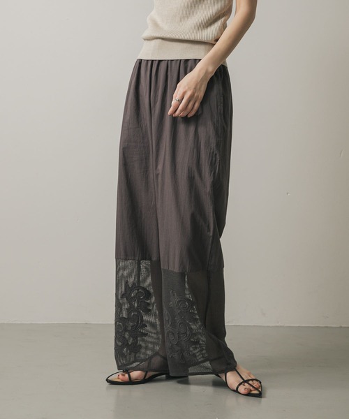【異素材の魅力が光る。インド刺繍×メッシュのイージーパンツ】 ・ナチュラルな風合いが魅力のインドコットン素材を使用 ・メッシュ生地とのドッキングで抜け感とトレンド感を演出 ・裾にはインドならではの繊細な刺繍をあしらい、上品なアクセントに 涼しげで軽やかな印象のパンツは、シンプルなトップスと合わせるだけで季節感のあるコーデに仕上がります。 【2025 Spring/Summer】【25SS】※この商品は、縫い目などに過度な力が加わることで滑脱(縫い目が滑って開いたり、縫いしろが抜ける)する場合がありますのでご着用の際はご注意ください。※その他お取り扱いに関しましては、商品に付属のアテンションタグをご覧ください。※商品画像は、光の当たり具合やパソコンなどの閲覧環境により、実際の色味と異なって見える場合がございます。予めご了承ください。※商品の色味の目安は、商品単体の画像をご参照ください。▼お気に入り登録のおすすめ▼お気に入り登録された商品は、マイページにて現在の価格情報や在庫状況の確認が可能です。お買い物リストの管理にぜひご利用ください。素材感透け感 : ややあり(IVORY),あり(メッシュ部分)伸縮性 : なし裏地 : あり光沢 : なしポケット : ありone