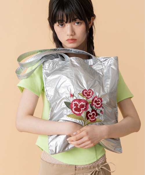■POINTCasselini定番のナイロン刺繡トート。A4サイズが入り、軽くて使いやすい実用性がありながら、他の人と被らない素材感と刺繍が魅力です。内側にポケット付きなので、化粧品やアクセサリー、小物などを整理しながら収納できます。使いやすいお花刺繍のブラック・シルバーと、コーディネートのポイントになるわんちゃん刺繍のブルーの3色展開です。■COLORBLACK/SILVER/BLUE※画像の商品は光の照射や角度により、実物と色味が異なる場合がございます。また表示のサイズ感と実物は若干異なる場合もございますので、予めご了承ください。※お取り扱いの際は、商品についている品質表示とアテンションタグを必ずご確認下さい。<<Casselini/キャセリーニ>>1987年にスタートした日本の服飾雑貨ブランド。Be myself / With playfulただ"かわいい"だけじゃないいくつものテイストを取り入れたミックススタイル。わたしらしさをつくるもの。ころころと変わる毎日の気分に寄り添える小物を提案します。<<お知らせ>> ◆商品のお気に入り登録◆ お気に入りアイテムの値下げ・再入荷・在庫1点などの通知を受け取ることができます。 ◆ブランドのお気に入り登録 ◆新商品や再入荷、セール、クーポン配布などお得な情報を受け取ることができます。