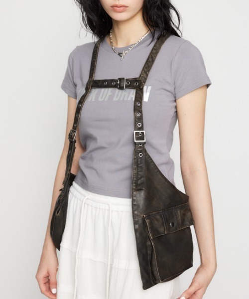 ■POINT:ヴィンテージ感のある加工感や、ポケットデザインがポイントのベスト。 ■DETAIL:ハトメやベルトなどギミックの効いたアイテム。 大きめのポケットデザインなので、バッグ感覚でも使用可能です。 ■STYLING:LOOSEY N/S PRINT TOPS(510ISM90-2251)など、ベーシックなアイテムにレイヤードするだけでワンランク上のコーディネートに。 ■透け感:なし ■光沢感:なし ■伸縮性:なし ■裏 地:肌側も表地仕立て ※本品は合成樹脂を使用しています。 時間の経過と共に劣化が生じ、着用や洗濯・クリーニングの繰り返しにより徐々に硬化、剥離やひび割れ、光沢の減少等が生じます。 汚れが付着したままの放置は劣化を早めますのでご注意下さい。 濃色は摩擦により色移りしますのでご注意下さい。 過度な摩擦や引っ張りは樹脂の剥離の原因になりますのでお避け下さい。 アイロン掛けはお避け下さい。 クリーニング後は、カバーを外して風通しの良い所で風乾して保管下さい。 保管は高温多湿を避け、光の当たらない場所に保管し、時々陰干しして下さい。 衣服間にゆとりをもって、ハンガーにかけて保管して下さい。_____________________ LAGUA GEM(ラグア ジェム) ー媚びない強さとしなやかな女性らしさが共存するスタイルー カジュアルなアイテムにストリート&ヴィンテージテイストをミックス メンズライクになりすぎない女性らしさとバランス感のある着こなしにこだわった新しいカジュアルスタイルを提案 _____________________ ▼商品のお気に入り登録 お気に入りアイテムの値下げ・再入荷・在庫1点などの通知を受け取ることができます。 ▼ブランドのお気に入り 登録新商品や再入荷、セール、クーポン配布などお得な情報を受け取ることができます。 SPRING & SUMMER(春服・夏服)