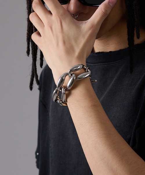 【ANDER HUNK/アンダーハンク】 ▼アイテム概要存在感あるヘビーチェーンデザインで、どんなコーディネートにもエッジを加えるアクセサリーです。 ▼デザイン 重厚感のある大きめのチェーンが手元に存在感をプラスします。 ※「注意点」 持続的な汗などの影響によりシルバーコーティングが剝がれてしまうことがあります。ご了承くださいませ。 ※モデル写真はサンプルにて撮影を行い、ビジュアルイメージの為に画像加工を行っております。お届けする実際の商品と仕様が異なる場合がございますので、商品詳細画像を必ずご確認の上ご購入ください。 ※ご覧のモニター環境や撮影環境により、実物の商品と多少色味が異なって見える場合がございます。 また表示のサイズ感と実物は若干異なる場合もございますので、予めご了承ください。 ※サイトに表示されているカラー名と実際のお届け商品に記載されているカラー名が異なる場合がございます。 ----------------------------------------------- 【ANDER HUNK/アンダーハンク】 グランジムードを中心にトレンドをミックスさせたストリートウェアブランド 新作情報は公式アカウントからチェック! ↓ Instagram【@anderhunk_official】 ---------------------------------------------- 【 ATTENTION 】 ・アテンションタグや洗濯表示を必ずご確認の上、ご使用下さい。 【 SHOPPING 】 ▼商品のお気に入り登録をクリック 再入荷やラスト1点、セール等の通知を受け取ることが出来ます。 ▼ブランド (ANDER HUNK) のお気に入り登録 最新のブランド情報を受け取ることが出来ます。