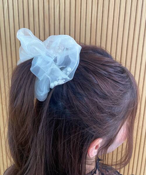 大小さまざまなパールが包まれたデザインが特徴的なシアー素材のシュシュ。 やわらかな素材感で髪にやさしくフィットし、長時間の使用でも快適なつけ心地です。 カジュアルからお出かけシーンまで幅広く使え、アクセサリー感覚で手首につけるのもオススメです◎ ■商品のお気に入り登録 再入荷通知やのこりわずか、お得なプライスダウンの情報も受け取ることができます。 ぜひご登録ください◎ ※こちらの商品はWEB限定販売商品となっております。