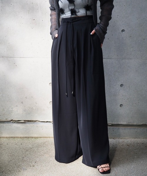 オンオフ使えてシンプルで着回しの効くワイドパンツ。フロントサイドにダブルタックを施しているので、お腹&太ももまわりに余裕があり、きちんと見えしつつもラクな穿き心地です。ワイドレッグながらも生地の縦落ちでスッキリとした佇まいに。ウエストは共布ベルトを採用した、トップスインコーデがおしゃれに決まるデザイン。キュッと引き締まって見えるうえ、スタイルアップが叶うのも嬉しいところ。レッグラインを拾いにくいシルエットにこだわり、幅広い体型の方に合うようにお作りしました。■DETAIL・透け感:ややあり・生地の厚さ:普通・裏地:なし・伸縮性:ややあり<注意点>・色合いはモニター環境により若干の誤差が出ます。・サイズは平置きにして測定していますが、測り方によって誤差が出る場合がございます。・入荷・生産時期により、色、サイズ、素材など多少異なる場合がございます。・本製品は生産過程におきまして、生地を織る際の糸の継ぎ目や多少のほつれが生じることがあります。・簡易包装となっており、保管・梱包時にシワが伴う場合がございます。