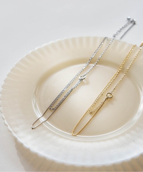 【rapiécage ラピエサージュ】 ・重ね着けしたような華やかなネックレス ・サイドリングがワンポイント ・これ1つでコーデが完成 重ね着けしたように見える2連ネックレスは、サイドリングがワンポイントに。 着けるだけで首元を華やかに演出してくれます。 これ1つでコーディネートが完成するから、忙しい朝にもうれしい。 ※rapiécageオリジナル巾着に入れてのお届けになります。 ※商品画像は、光の当たり具合やパソコンなどの閲覧環境により、実際の色味と異なって見える場合がございます。
