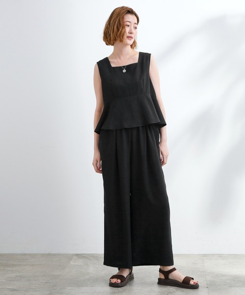 枚でお洒落見え 真夏のアクティブリゾートスタイル 【デザイン】 まるでキャミビスチェとワイドパンツのセットアップを着ているかのような1枚でサマになるコンビネゾンです。 ペプラムシルエットが可愛く、気になる腰回りをさり気なくカバーしてくれます。 上身頃は裏地で内側吊ったデザインになっているので、インナー要らずで着用いただけます。 後ろ中心ファスナー開き仕様で着脱も楽です。 【素材】 程よいシボ感が特徴の合繊素材を使用。 綿ライクな風合いながらも、合繊特有の比較的シワになりにくく、お手入れが楽なのも嬉しいポイントです。 【スタイリング】 1枚で完成されたデザインなので、カーディガンや薄手のブルゾンを上に羽織って夏のデイリーカジュアルスタイルに最適です。 旅行等のお出掛けに1枚あると便利なコンビネゾンは、夏のワードローブに1枚持っていると重宝するアイテムです。 【仕様】 ・ポケット数:横×2 ・後ろファスナー ・上身頃のみ裏地あり ※ライトグレー(311)はやや透け感があるため、インナーの着用をおすすめします。 ※照明の関係により、実際よりも色味が違って見える場合があります。また、パソコン・スマートフォンなどの環境により、若干製品と画像のカラーが異なる場合もございます。 【25SS】【25AW】 モデル情報:身長166cm B80 W59 H86 着用サイズ:02(M) 店舗へのお問い合わせ商品番号:768-53001 ●製品寸法: 01(S):着丈131cm B92cm 肩幅37cm W69~97cm H111cm 股下58cm 渡り幅36cm 裾幅31cm 02(M):着丈133cm B95cm 肩幅38cm W72~100cm H114cm 股下59cm 渡り幅37cm 裾幅32cm 03(L):着丈135cm B98cm 肩幅39cm W75~103cm H117cm 股下60cm 渡り幅38cm 裾幅33cm 04(LL):着丈137cm B101cm 肩幅40cm W78~106cm H120cm 股下61cm 渡り幅39cm 裾幅34cm 05(3L):着丈137cm B104cm 肩幅41cm W81~109cm H123cm 股下61cm 渡り幅40cm 裾幅34cm 備考:
