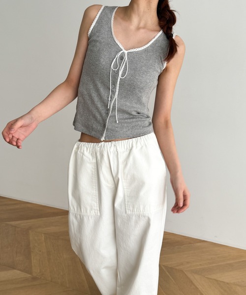 デザイン アイレット生地×ピコレースでガーリーな印象に。 首元のリボンも目を惹くポイントです。 素材 コットン100%の優しい肌触りで、着心地の良さが魅力。 コーディネート パンツにもスカートにも合わせやすい丈感◎ カジュアルからフェミニンまで幅広いコーデに合わせていただけます。 El mar(エルマール) El mar はスペイン語で『海』 海に向かうときはだれでもワクワクする。 洋服を選ぶとき、袖を通すとき、 同じように心が踊るアイテムを提案したい。 そんな『ワクワク』な気持ちを込めて El mar はデビューしました。 ------------------------------------- 生地の厚さ:厚い〇〇●〇〇薄い 伸縮性:あり 透け感:BLK,GRYなし/WHTややあり 裏地:なし 光沢:なし ------------------------------------- 取扱い ・蛍光増白剤が入っていない洗剤をご使用ください。 ・クリーニングネットをご使用ください。 ・濃い色と白 ・淡色物は分けて洗ってください。 ・洗濯で多少縮むことがあります。洗濯後はすばやく形を整えて干してください。タンブラー乾燥はお避けください。 ・アイロンの際は当て布をご使用ください。 ・着用時の汗や摩擦により、他の衣類や鞄などに色移りすることがありますので、淡色系との着合わせはご注意ください。 ・摩擦や引っかけにご留意ください。 ※取り扱い及びお手入れ方法については、商品についている取扱表示、洗濯表示にてご確認下さい。 ※照明の関係により、実際よりも色味が違って見える場合があります。またパソコン・スマートフォンなどの環境により、若干製品と画像のカラーが異なる場合もございます。 ※商品の色味は、商品アップ画像をご参照ください。