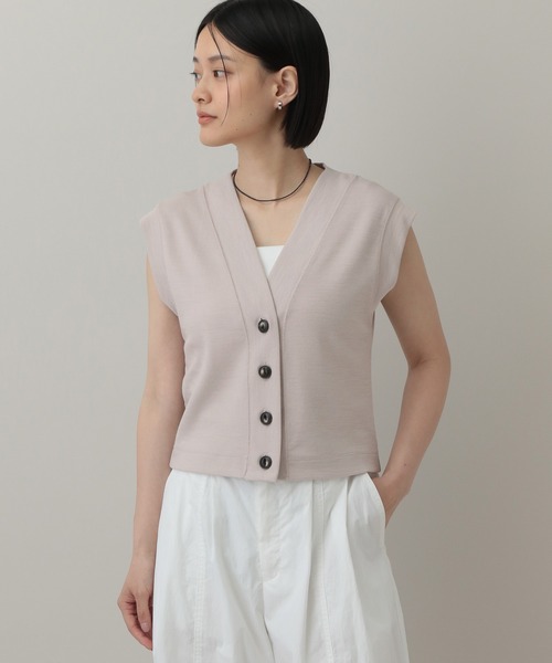 ーーー 洗える上質ウールミラノリブを使用! ベスト型のデザインが目を引くコンパクトノースリーブカットソー ーーー 【デザインと特徴】 ベスト型のデザインで、トップスのように1枚でさらっと着ていただくのがおすすめな コンパクトシルエットのカットソーです。 縦長のVネックデザインで、デコルテまわりもすっきり見えます。 ほどよく厚みのある素材感なので、透けも気にならないです。 【素材特徴】 防縮タイプのウールを使用したコンパクトなミラノリブ素材を使用しています。 ふくらみのあるウールのタッチと肌さわりのよい綿のタッチ、 それぞれの良さを活かした風合いに仕上がっています。 \夏こそウールがおすすめ/ ウールは繊維に空気をたっぷり含むので断熱性が高い素材です。 水分の吸湿・放出性はコットンの約2倍もあり、べたつきにくいです。 洗えるウールなので汗汚れの心配も不要◎ 【スタイリング】 コンパクトなシルエットなので、ボリュームシルエットのボトムスとの相性◎ 縦長のVネックデザインなので、オトナなアクセサリーと合わせて 着ていただくとグッとオトナなスタイリングに。 --------------------------------------------------------- 《インフォメーション》 ◆商品のお気に入り登録 ♡をクリックで気になるアイテムをお気に入り登録していただくと、 以下の通知を受け取ることができます。 ・入荷 ・再入荷 ・ラスト一点 ・セール対象時 ◆ブランドのお気に入り登録 新商品や再入荷、セール、クーポン配布などのお得な情報を受け取ることができますので、是非ご登録ください♪ 公式Instagram >>> 【@apartbylowrys 】 おすすめアイテムや新作情報、" ショップニュース "を更新中! ぜひフォローしてみてくださいね^^ ※ご注文いただいた予約商品のお届け時期の確認は、注文履歴ページより行えます。
