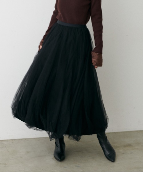 【2025AW LARUTA】ボリュームチュールスカート■Design発売から大人気のロングセラー商品が新色を加えて再登場! チュールを2枚重ねてふんわりとボリュームを持たせたエレガントなフレアスカート。動くたびに優雅な揺れ感を生むシルエットが魅力です。ウエストはゴム仕様で、きれいできちんとした見た目とリラックス感のある着心地を兼ね備えた1着。裾にかけてふんだんにチュールを使用し、スタイリングを華やかに仕上げてくれる大人のフェミニンスカートです。■StylingTシャツはもちろんブラウスやカーディガンとどんなトップスともマッチするのがこのスカートの魅力。秋口にはシルエットのスウェットを合わせてカジュアルミックスな着こなしにきめるのも◎長すぎず程よい丈感なので、フラットシューズやスニーカーを履いても快適にお召いただけます。ロングシーズンお使いいただけるワードローブに欠かせないアイテムです。■Fabric軽くて柔らかなチュール素材を使用。シーズンを問わずお召し頂ける万能アイテムです。===================透け感:なし裏地:あり伸縮性:ウエストゴム部分あり光沢感:なし生地感:軽くて柔らかなチュール素材===================・画像の商品はサンプルです。実際の商品と仕様、加工が若干異なる場合がありますのでご了承ください。▼ コンセプト<LARUTA>シンプルだけど洗練されていて、それでいて自然体。着飾るよりも着ていてリラックスできる、そんなお洋服を纏いたい気分。※着用、お取り扱いの際は、商品に付いている品質表示とアテンションタグを必ずご確認ください。【お気に入り登録でお得な情報がいっぱい】・「商品のお気に入り登録」で再入荷通知や、ラスト1点の通知、セール通知をいち早く受け取ることができます。・「ブランドのお気に入り登録」で新商品や再入荷など、お得な情報を受け取ることができます!※店舗の入荷時期は商品によって異なります。店頭の在庫状況につきましては各店舗にてお問い合わせください。※撮影時の光の関係で、画面上の画像と実際のお色とでは若干の色差が生じる可能性がございます。また、ご覧いただいているモニター画面や、お使いのブラウザによっても、お色の違いがございますことをあらかじめご了承くださいませ。