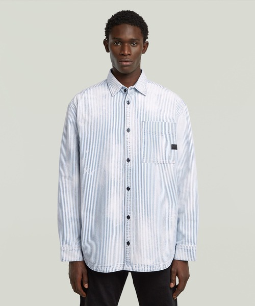 OVERSIZED 1-PKT OVERSHIRT/1ポケットオーバーサイズブリーチストライプデニムシャツジャケット